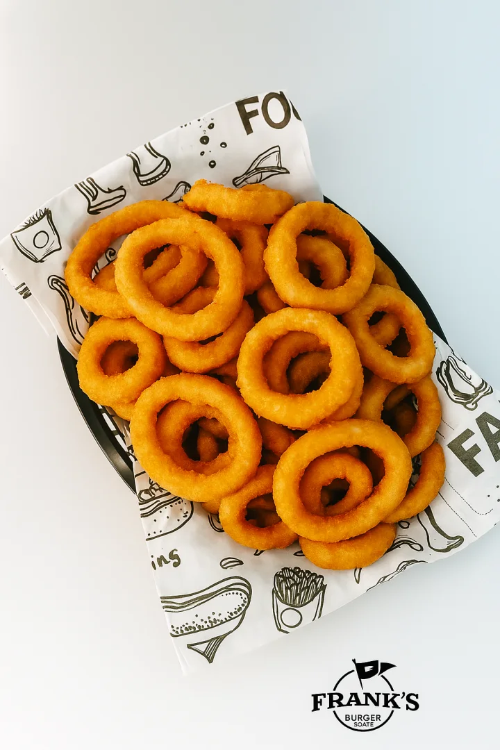Clássicos e irresistíveis! Uma porção generosa de anéis de cebola empanados e crocantes, dourados na medida certa. Perfeitos para acompanhar seu burger ou saborear como petisco! 😋